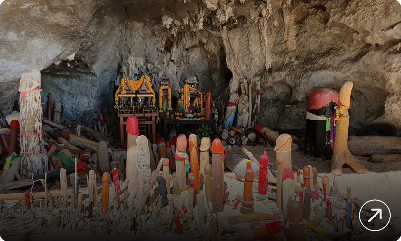 เป็นจุดท่องเที่ยวสำคัญด้านความเชื่อและ ศรัทธา นักท่องเที่ยวทั้งไทยและต่างชาติ มักมากราบไหว้ขอพรศาลพระนาง ที่ตั้งอยู่ บริเวณหน้าถ้ำ ถือเป็นไฮไลต์ของหาดพระ นางและเป็นหนึ่งในสัญลักษณ์ของอ่าวไร่เลย์